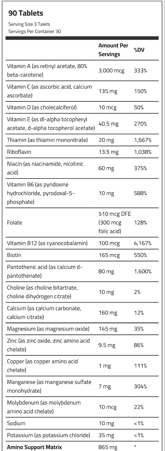 Muscletech Platinum Multivitamin contains the daily ratios that the human body needs of important vitamins such as vitamin A, C, D, B12 and B6. It includes 18 types of vitamins that a person depends on for the growth, maintenance, and protection of his body.
